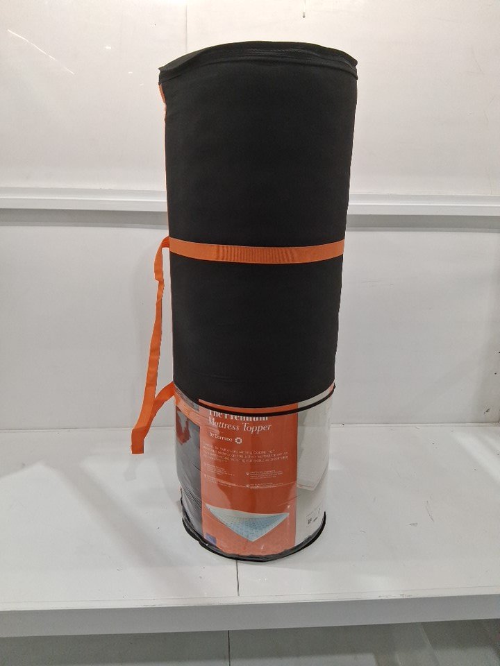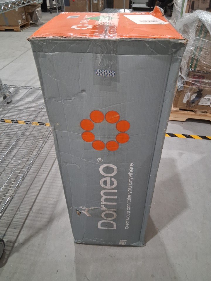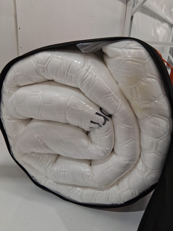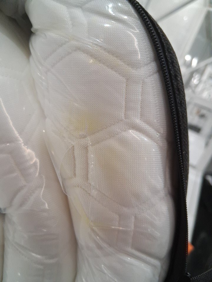 Though the mattress is still sealed in original packaging, there is a small cut in the plastic and some discoloration near it - see photos. Otherwise, appears to be in unused condition.
