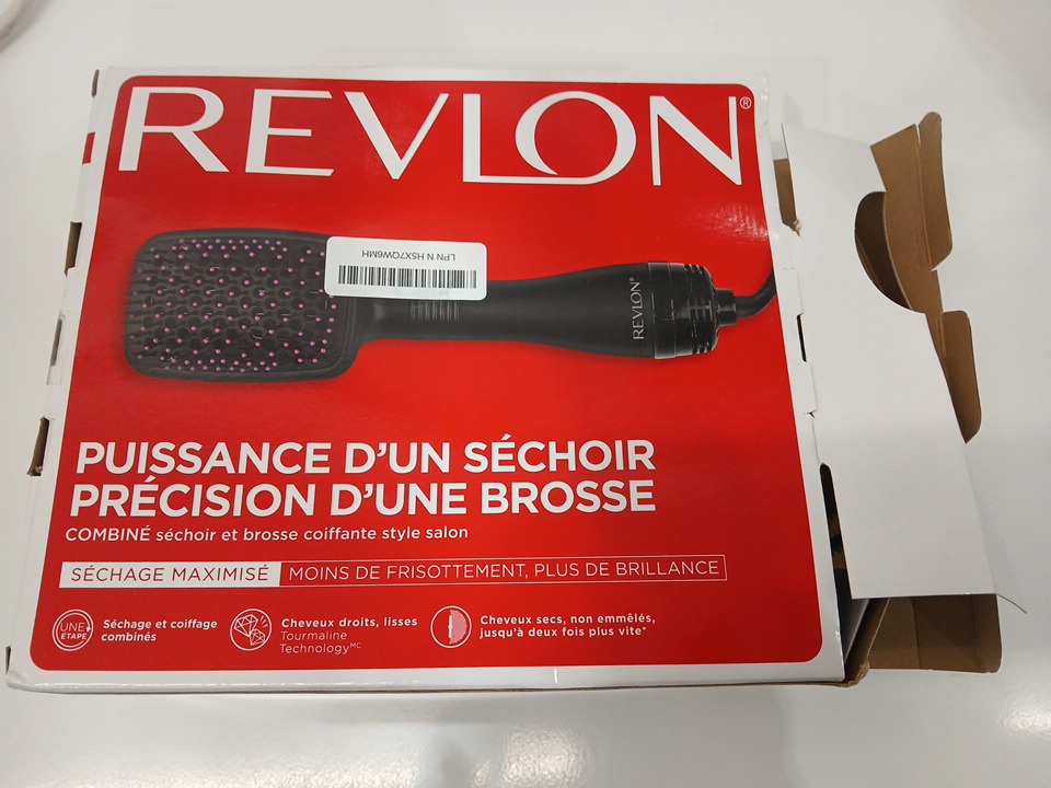 REVLON PRO ONE-STEP IONIC HAIR DRYER/STYLER PADDLE BRUSH - BLACK/PINK - (MODEL: RVDR5212F)