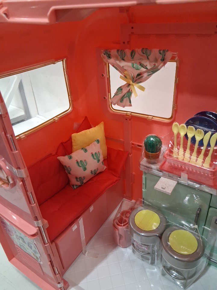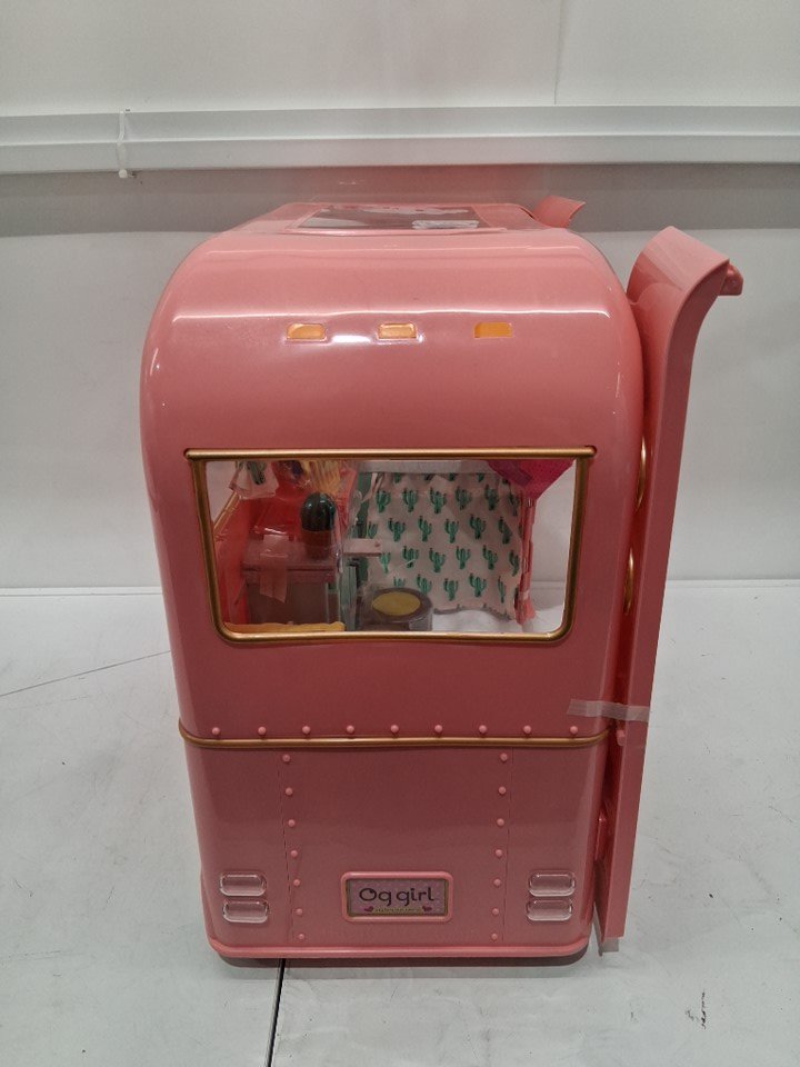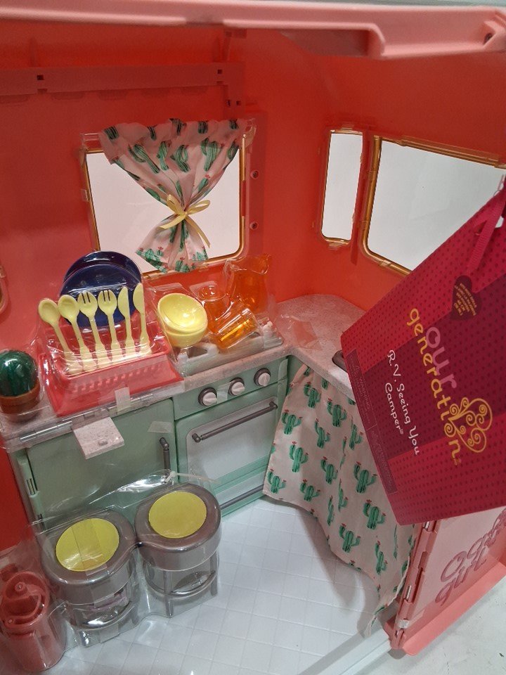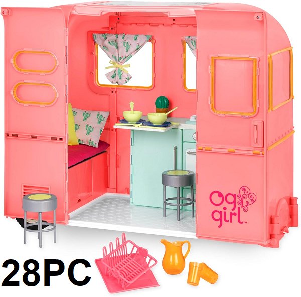 28pc kids Our Generation Camping Trailer Doll Vehicle - for 18" dolls - pink (model: BD37445Z)