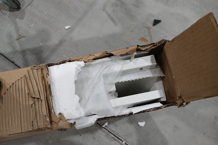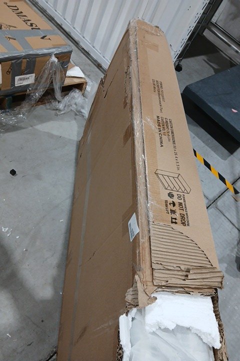 Box was sealed on all sides, but had a large rip at one corner, we opened to check for damage or missing hardware. We believe this item to be missing all or most of its assembly hardware, which looks to be generic.