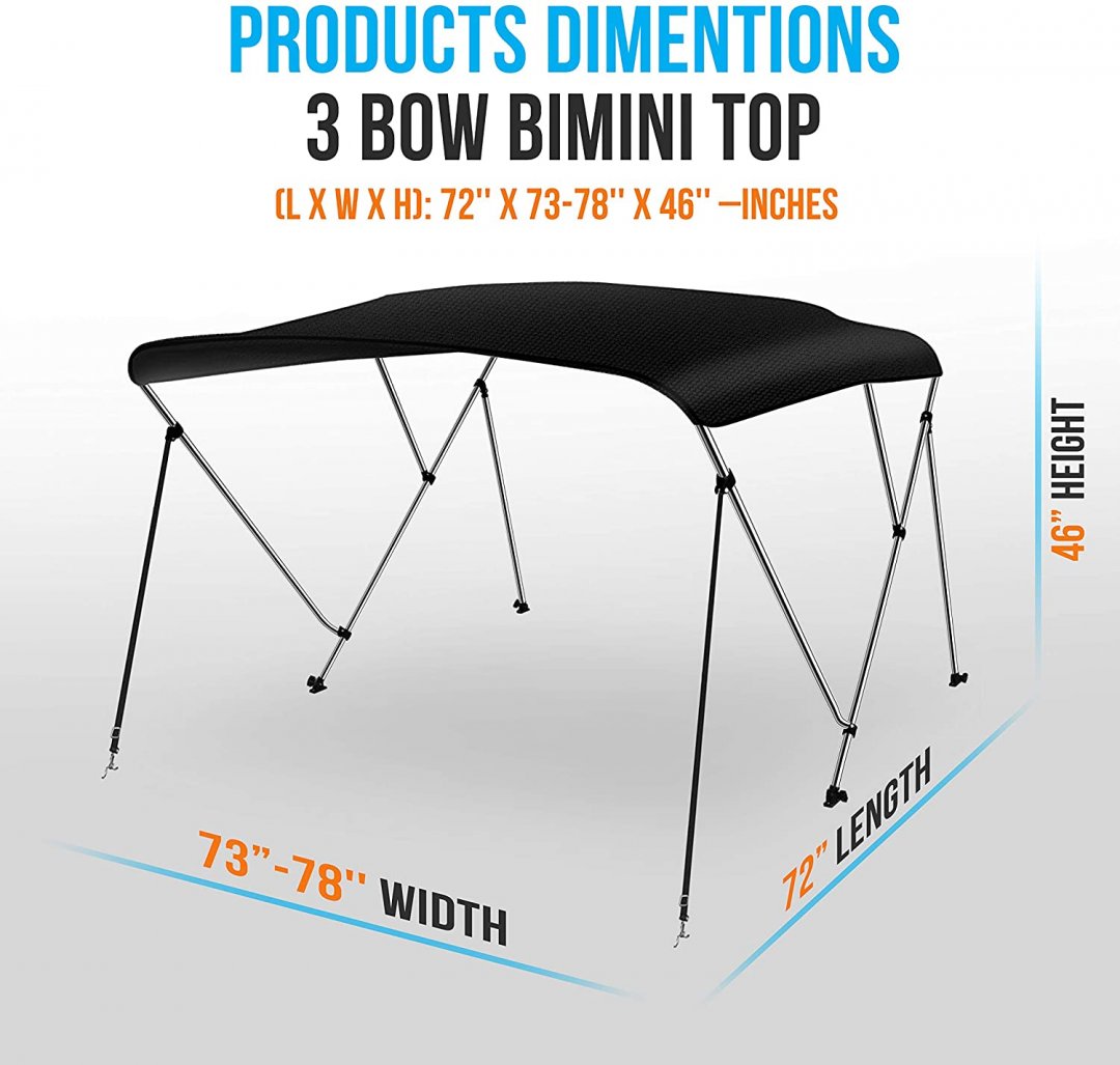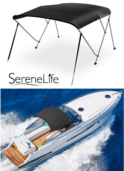 SERENELIFE WATERPROOF BOAT BIMINI TOP COVER, BLACK (MODEL: SLBT3BK731)