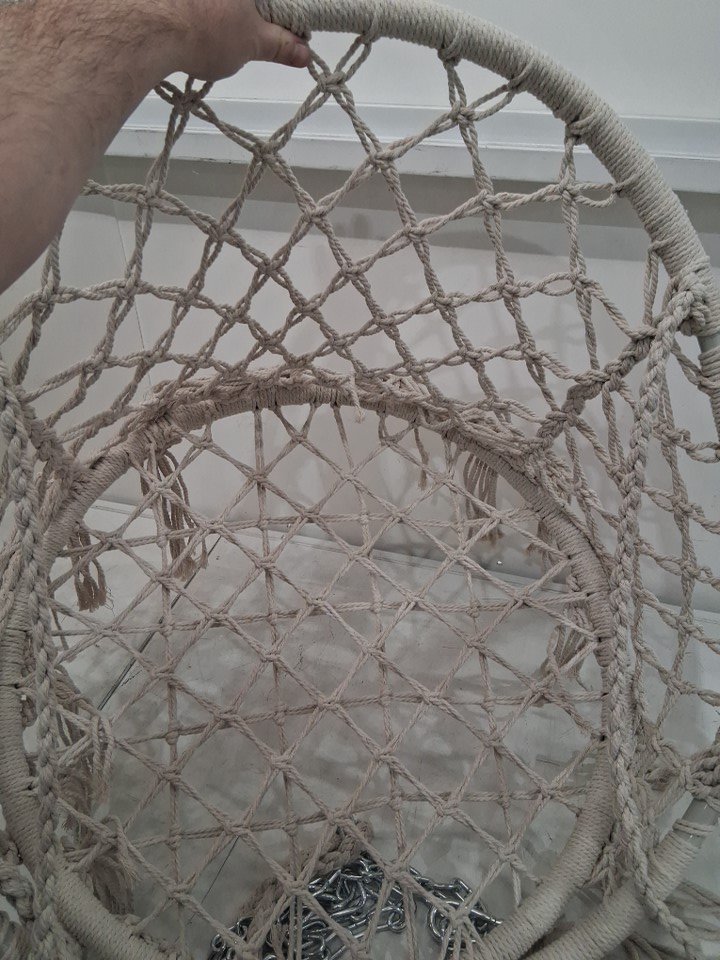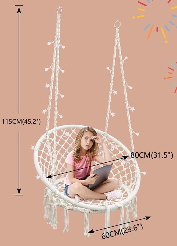 Indoor Outdoor Round Hanging Cotton Rope Macrame Hammock Chair Swing with Stainless Steel Hardware - 31.5" x 31.5" x 45.2" - Beige