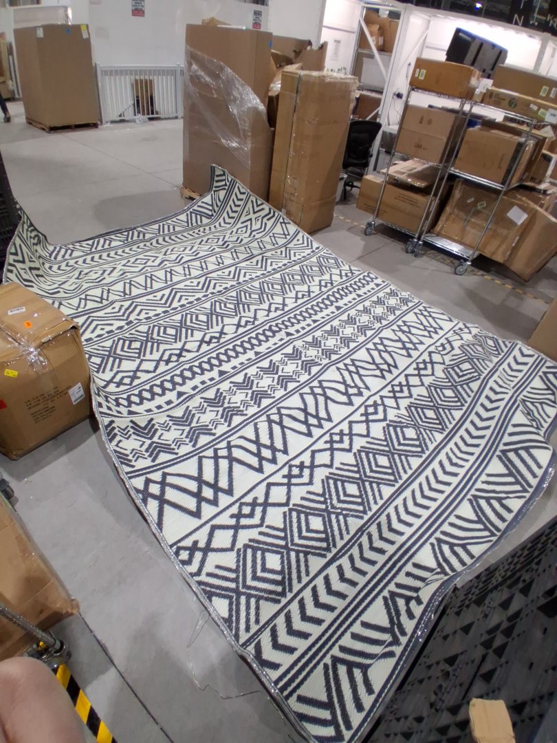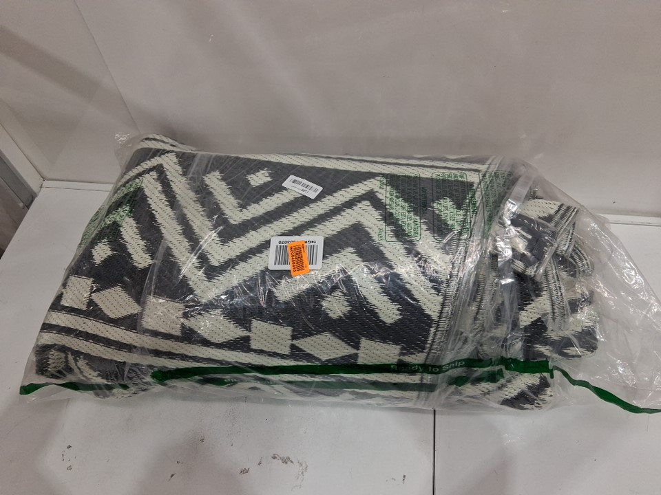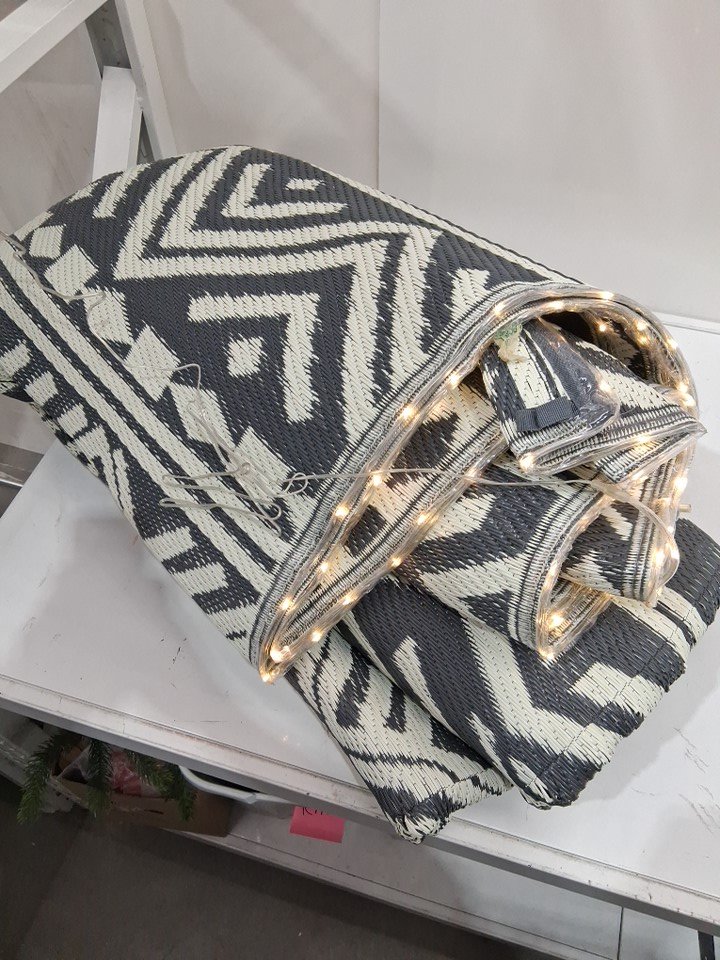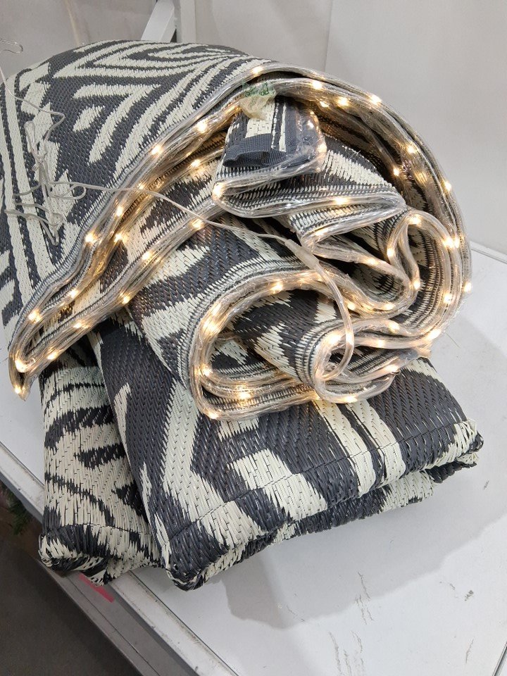Outdoor Rug Camping Mat with led strip lights - 10ft x 14ft - Blue/White