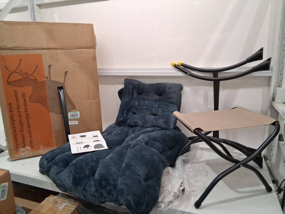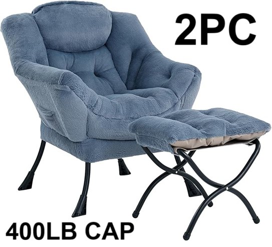 2PC GIVJOY COZY LAZY CHAIR AND OTTOMAN/FOOTREST - 400LB CAPACITY - PLUSH LIGHT BLUE