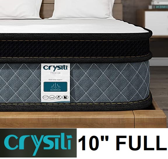 Crystli 10" Responsive Memory Foam Mattress Hybrid Innerspring Mattress in a Box Sleep Cooler with More Pressure Relief & Support - FULL - (MODEL:CR-CY10FU-CAAG)