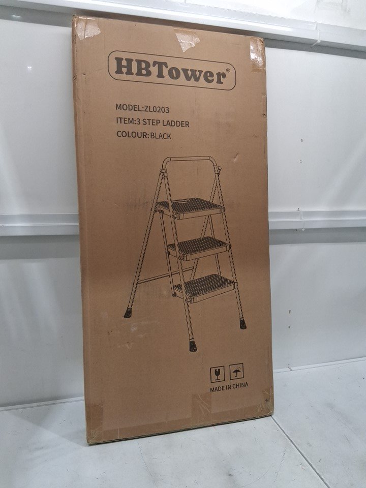 hbtower 3-step lightweight anti-slip portable step ladder - 500lbs max - black (Model: ZL0203)