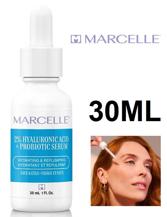 marcelle 2% hyaluronic acid + probiotic serum hydrating and replumping face & eyes - 30ml