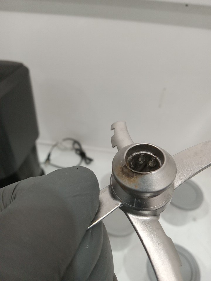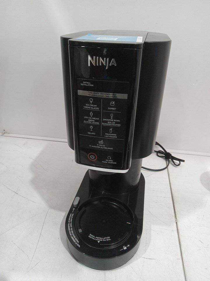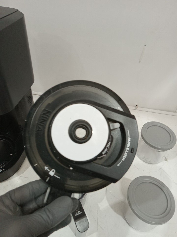 Please note that there is a minor dent on the blade. Although it still functions and rotates properly, the blade needs to be replaced. A replacement blade can be bought from https://www.amazon.ca/Replacement-Paddle-Compatible-Creami-Makers/dp/B0CWL7YWLZ/ref=asc_df_B0CWL7YWLZ?mcid=9af24cf7189a3714aea86ee52761a9b0&tag=googleshopc0c-20&linkCode=df0&hvadid=706745545816&hvpos=&hvnetw=g&hvrand=18344423667006206371&hvpone=&hvptwo=&hvqmt=&hvdev=c&hvdvcmdl=&hvlocint=&hvlocphy=9000801&hvtargid=pla-2297886356121&hvocijid=18344423667006206371-B0CWL7YWLZ-&hvexpln=0&gad_source=1&th=1 There are food and water stains on the pints and on the outer bowl. Tested for power and motor function only. (Please see photos)