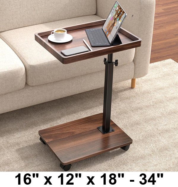 XNSDXV Adjustable Height C Shaped End Table with 360°Swivel - 16" X 12" X 18" - 34" - Walnut Brown (model:‎ A01)