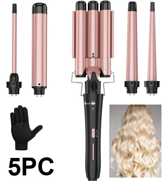 5PC 5 in 1 Wand Curling Iron - PINK/BLACK - (MODEL KS-C303)