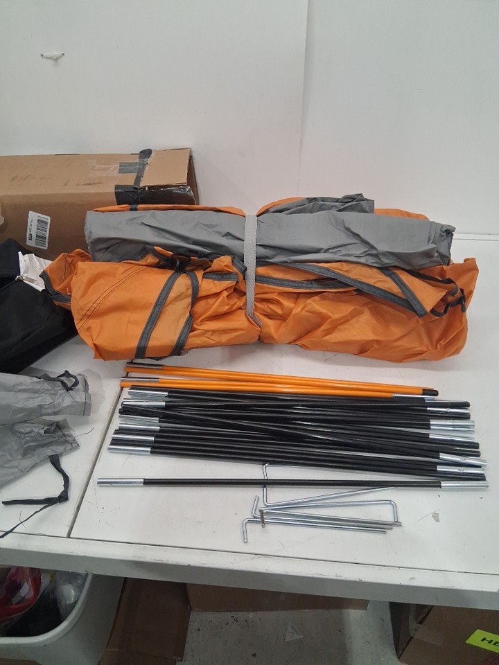 AMAZONBASICS 4-PERSON TENT, 4-SEASON - 9FT X 7FT X 48" HIGH - ORANGE/GREY - (MODEL: B01881TG20 / B077Y8DLSN)