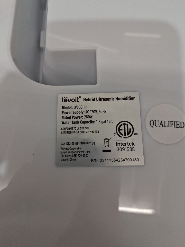 LEVOIT HYBRID ULTRASONIC WARM and COOL MIST HUMIDIFIER WITH REMOTE CONTROL & DIGITAL DISPLAY - WHITE - (MODEL: LV600HH)