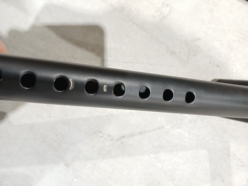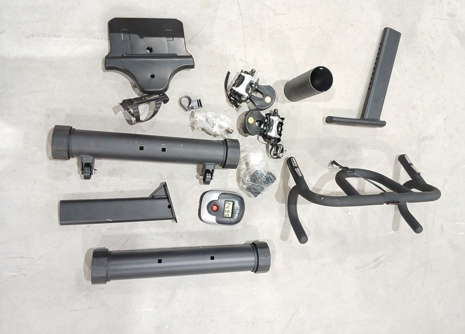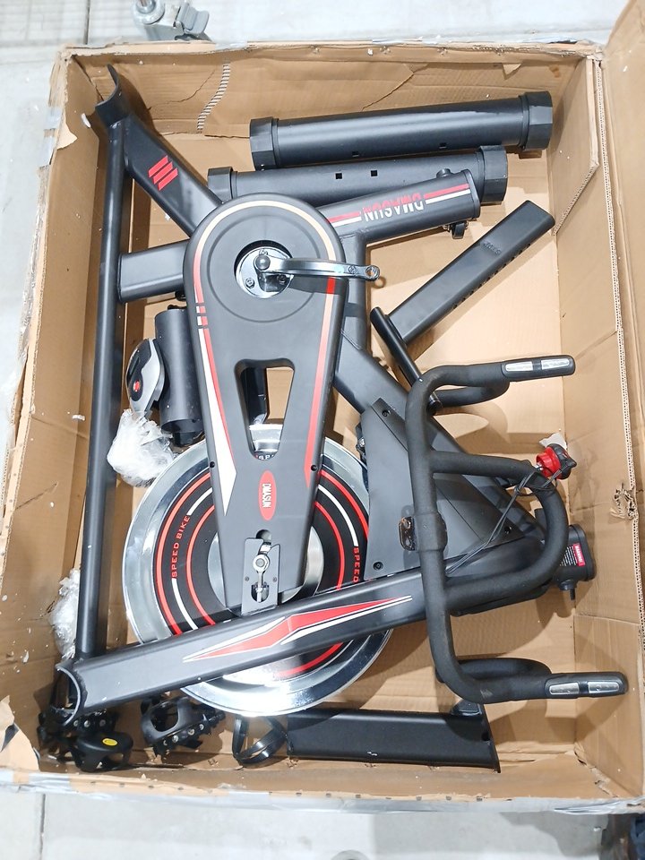 This item is missing its seat. This item has previous assembly marks and some rust marks on the metal pieces. Additional hardware is required