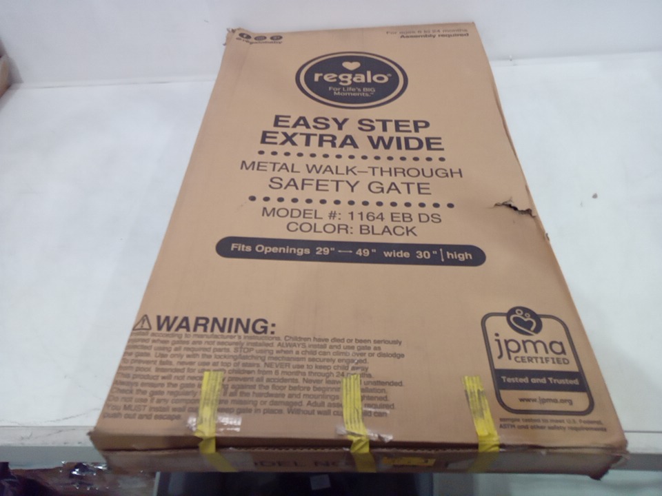 REGALO EASY STEP EXTRA WIDE METAL SAFETY GATE - 30" x 29" - 49" - BLACK (MODEL: 1164EBDS)
