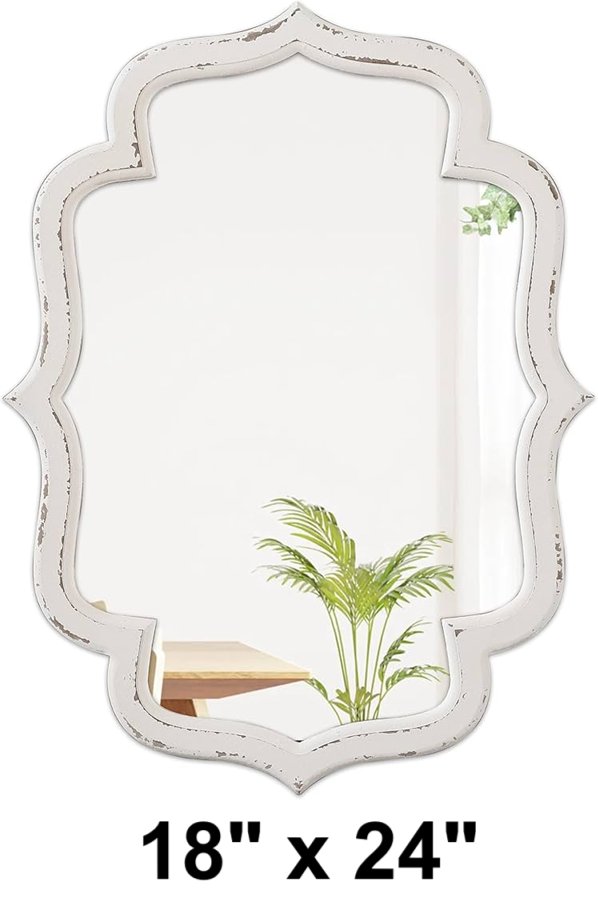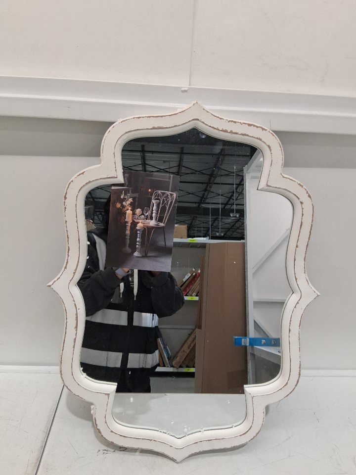 sinstosin Vintage Scalloped Oval Wall Mirror - 18" x 24" - white
