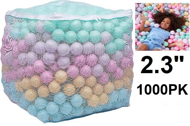 1000PK AMAZON BASICS BPA FREE PLASTIC BALL-PIT BALLS WITH STORAGE BAG - 2.3" DIAMETER - PASTEL COLORS (MODEL: 76187P)