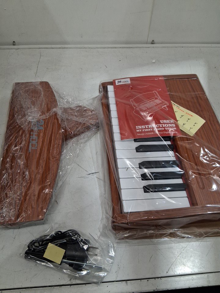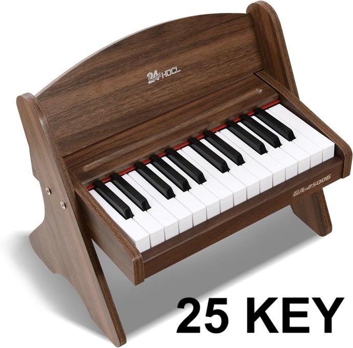 24HOCL Kids Piano Digital Keyboard 25 Keys Educational Instrument adjustable volume - walnut (model: 25006B)