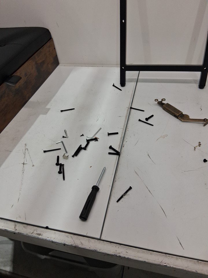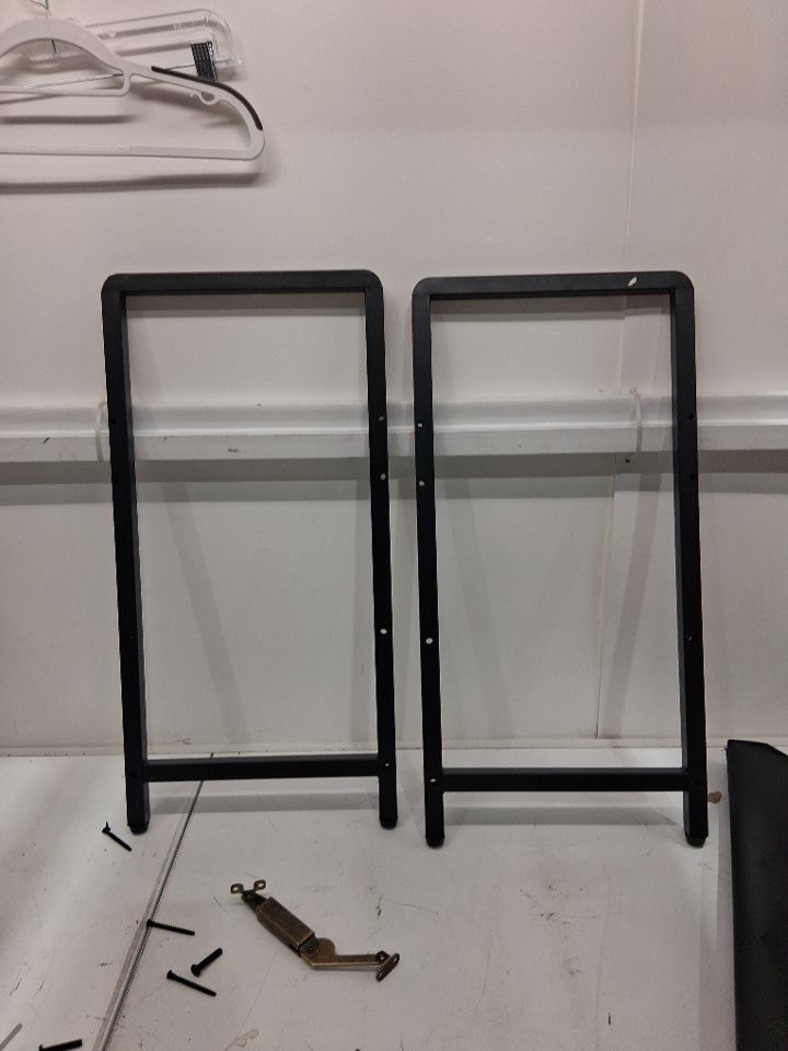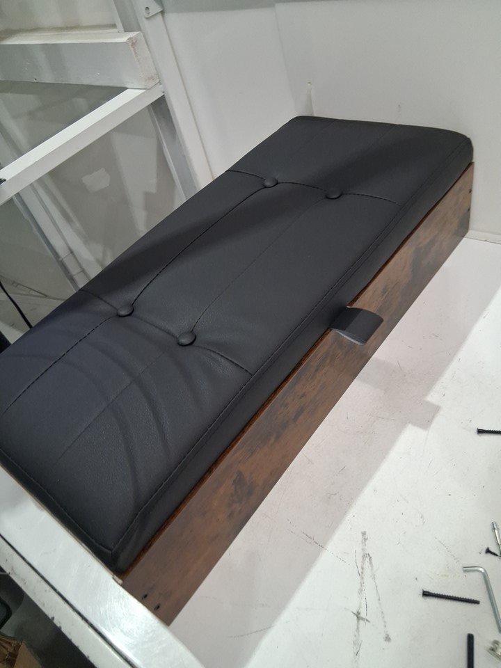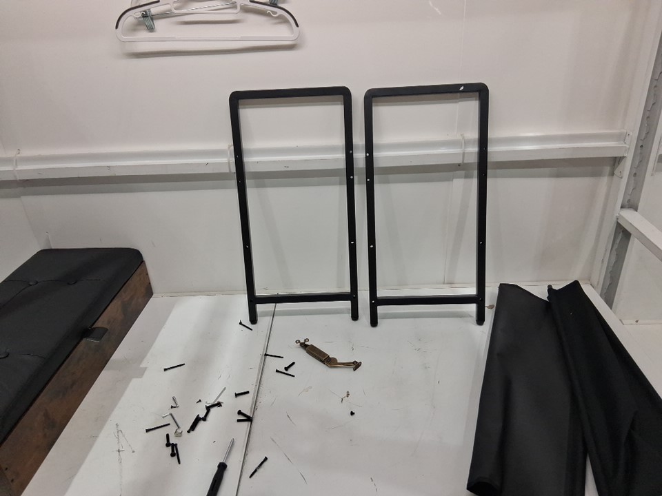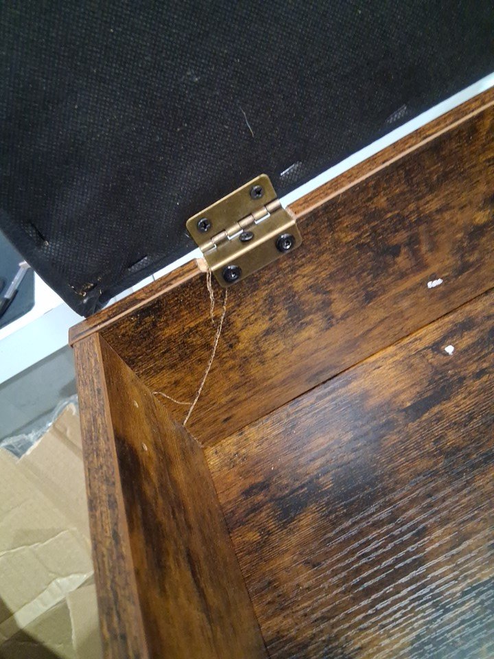 Part of the item has been assembled already and is currently together, a piece on the inside of the storage area is cracked and damaged but this should not affect the function of the item.