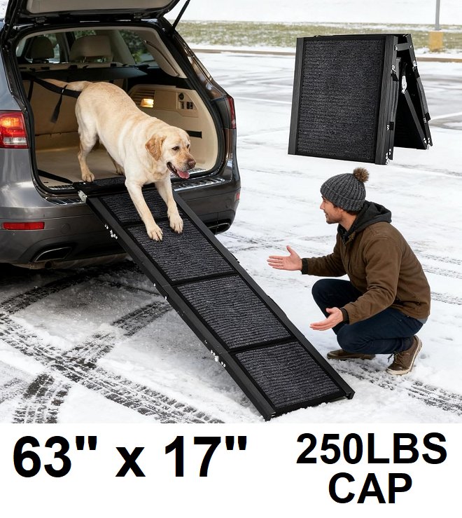 Garvee dog ramp for cars with non-slip surface - 63" x 17" - 250lbs Cap - Black/blue (Model: PPS_333HAW7J)