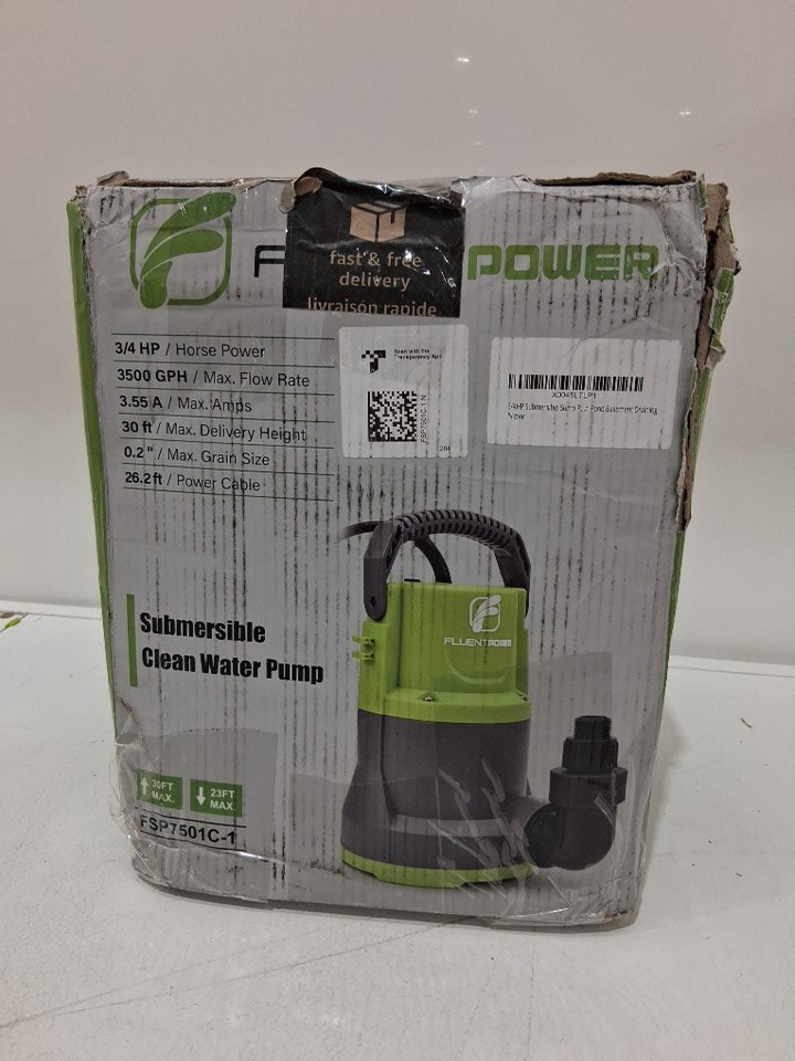 FLUENTPOWER Portable Utility Water Pump, Submersible multipurpose Sump Pump - 26ft cord - 3/4 hp - 3500gph - green (model: fsp7501c-1)
