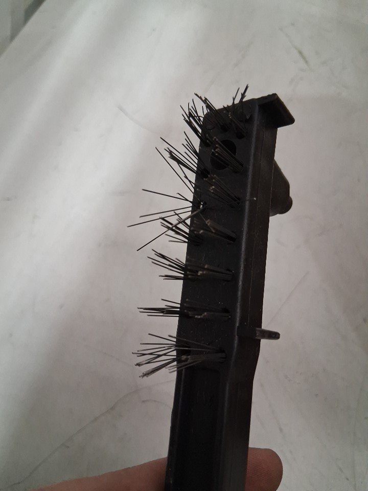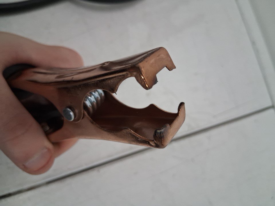 Burn marks on both clamps from previous use and the metal brush looks like it has been used.