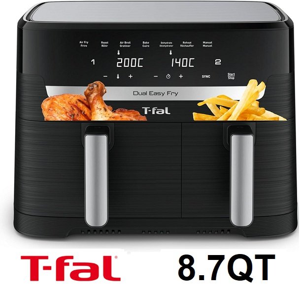 T-fal 7-in-1 Dual Easy Fry XL Air Fryer with 2 Baskets - 8.7qt - black - (model:EY901850)