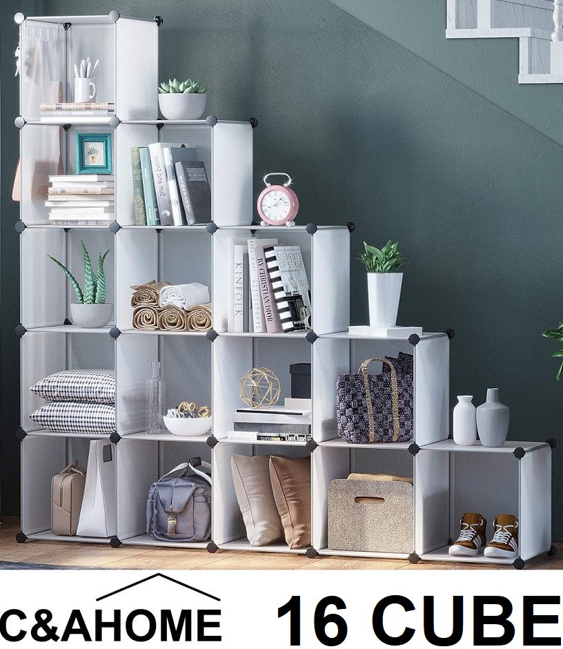C&AHOME DIY 16-Cube Plastic Storage Shelves Units Closet Organizer