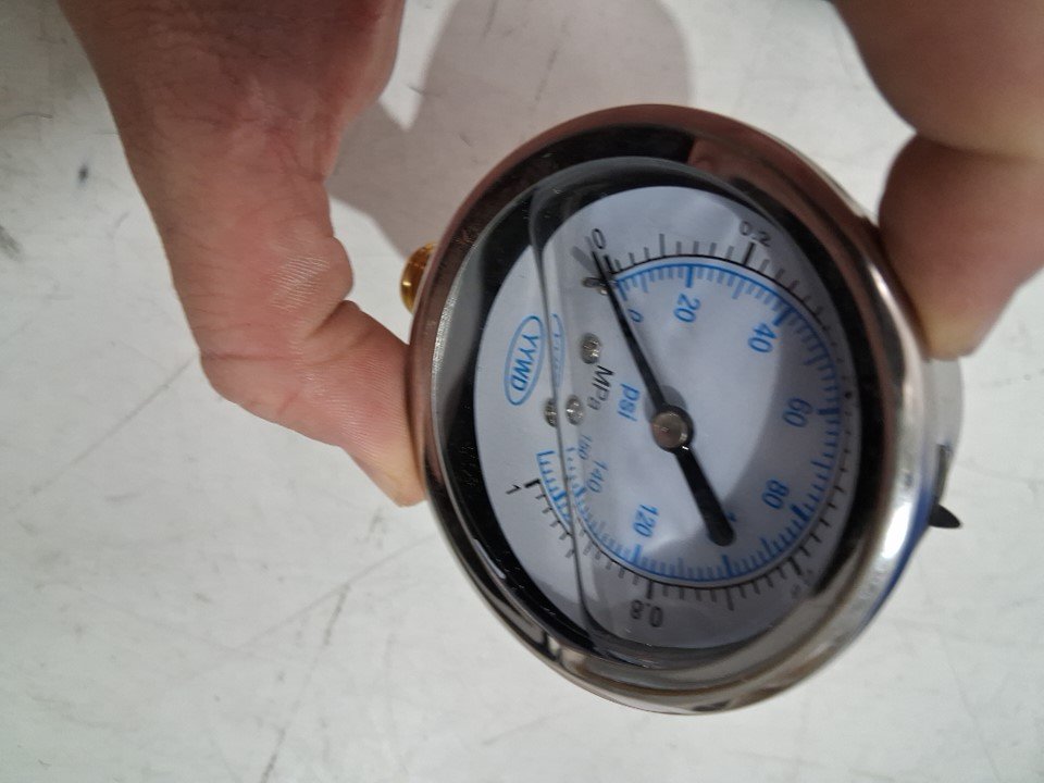 Pressure gage seems to be leaking and may need to be replaced before installation.