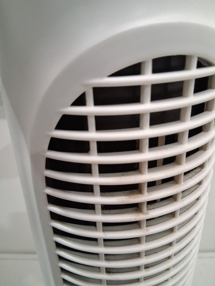 item has significant dust in the fan and on the base from previous use, can be cleaned before use