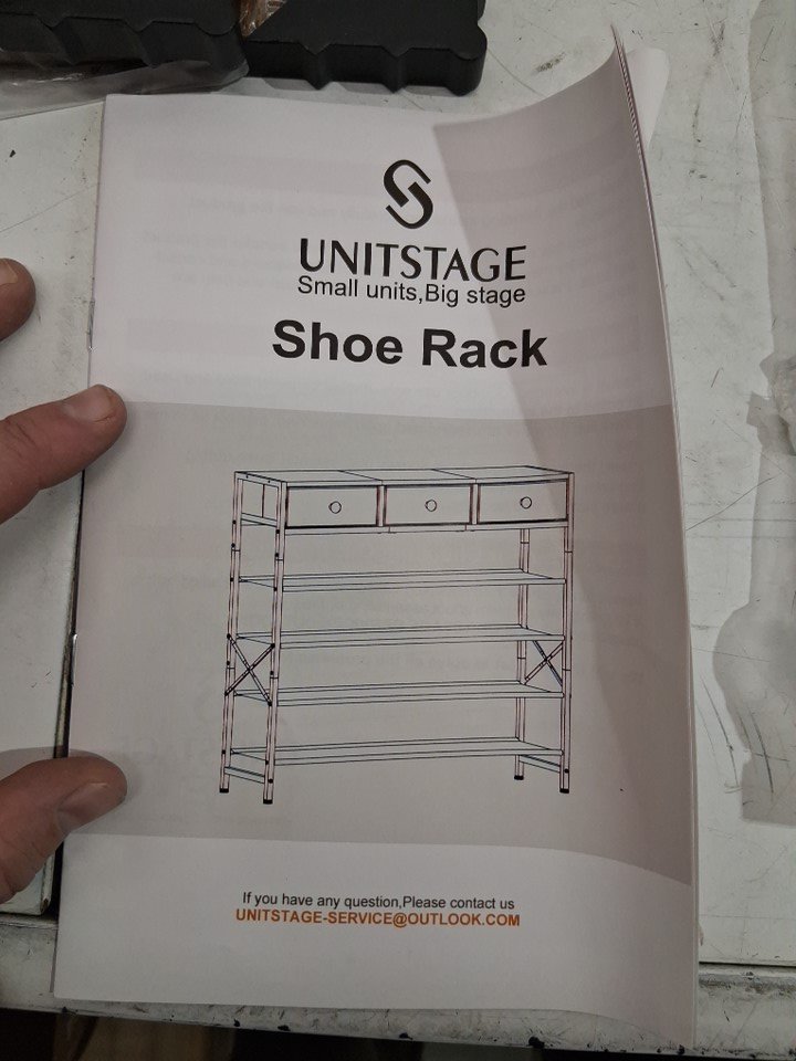 UNITSTAGE 5-Tier Metal Shoe Rack with Wooden Top Shelf, UPTO 16-20 PAIRS - RUSTIC BROWN