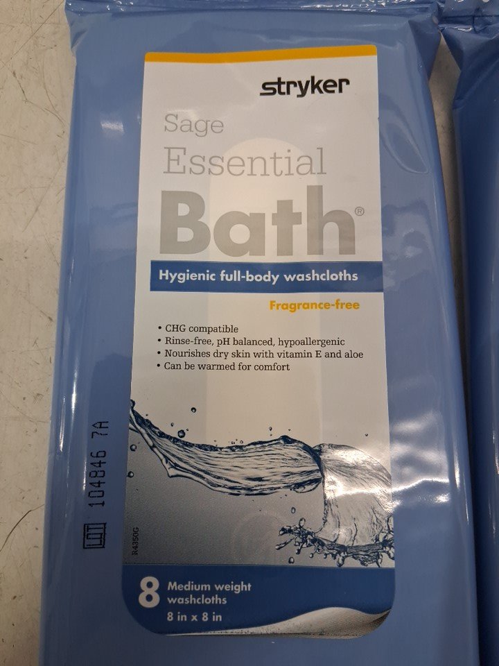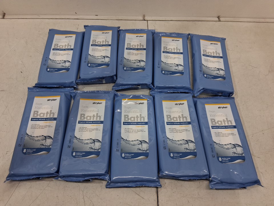 (10) 8pk stryker Sage Essential Bath Cleansing Washcloths - 8" x 8" each - 80 cloths total - white