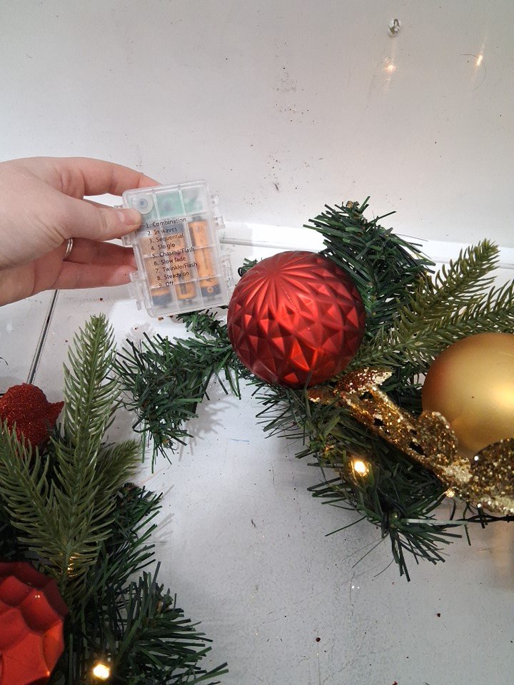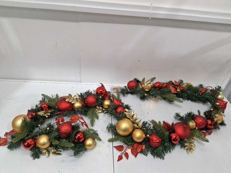 WANNA-CUL Pre-lit decorated Christmas Garland - 9 light functions - 9ft - green / gold / red