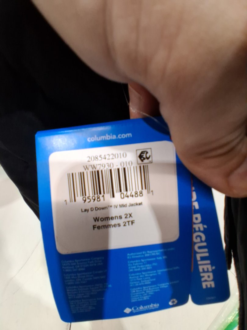 Womens colombia Lay D Down IV Mid Jacket plus size - 2X - black/grey/gold (style: 2085422010)