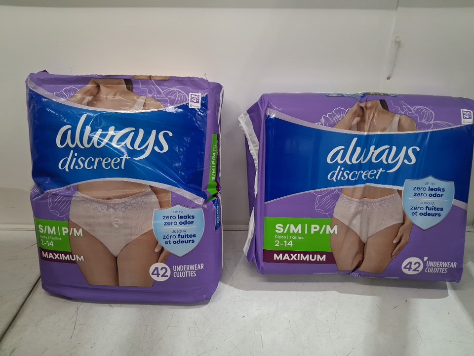 84PK Women's Always Discreet Maximum Protection Zero Leaks Underwear (2PKS of 42 Each) - Small/Medium - Light Pink
