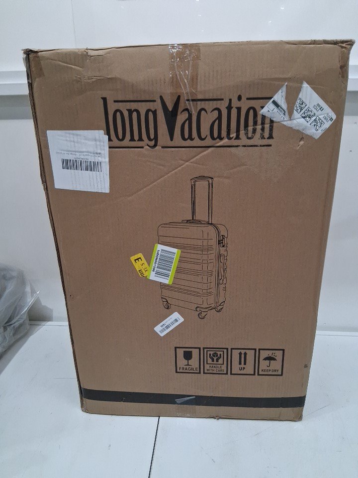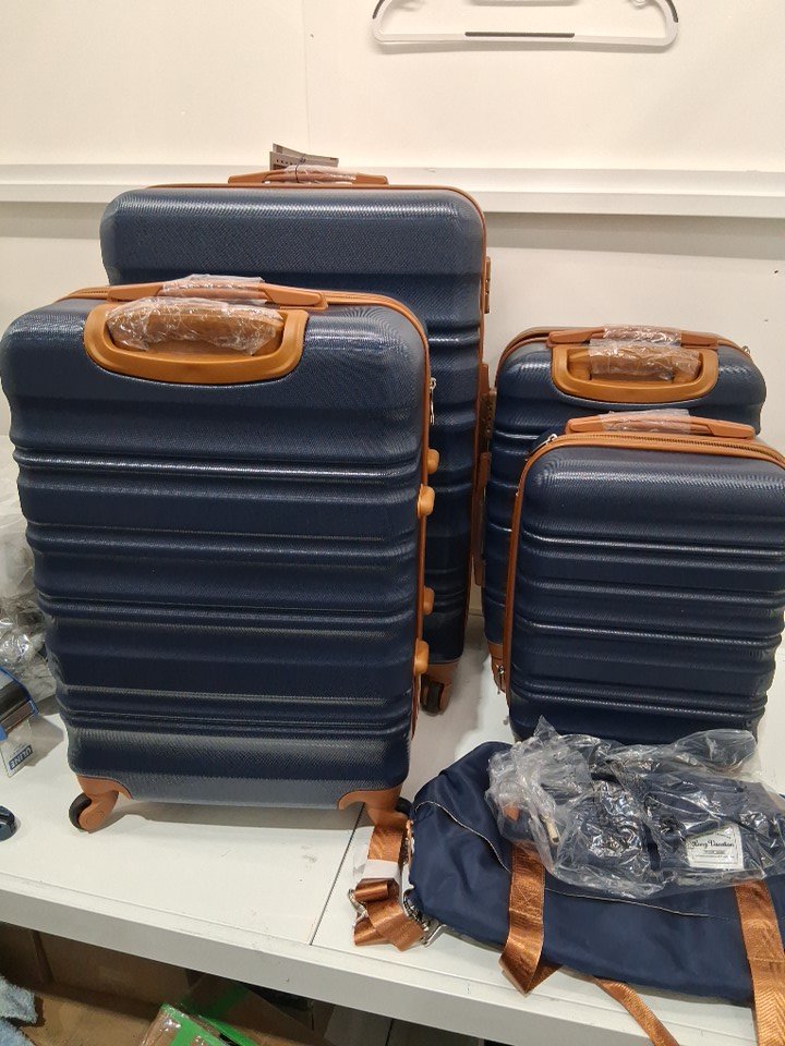 6Pc long vacation luggage set with 4 hardshell SPINNER suitcases DUFFLE BAG and toiletry bag - 16"/20"/24"/28" - navy /brown