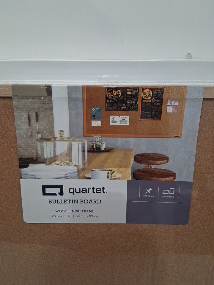 QUARTET CORK BULLETIN BOARD WITH FRAME - 23" x 35" - Brown - (model: q193523m01-az-r)