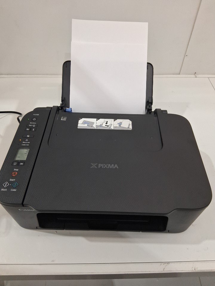 Normal power is functional, but there appears to be an internal issue causing paper to jam when being fed into the printer, and as a result we are unable to properly test its printing capabilities. Otherwise appears to be unused and includes an extra 2-pack of ink cartridges (black and colored) - see photos. Could likely be restored to proper function by opening up the machine and fixing whatever is jamming the paper, but does not function properly in its current state.