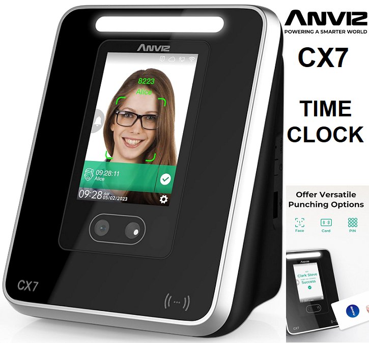 ANVIZ Time Clock for Employees, Small Business - Biometric Clock in and Out, Face/RFID/Pin Punching, Support Door Access, with Professional Cloud Software - black (model: CX7)