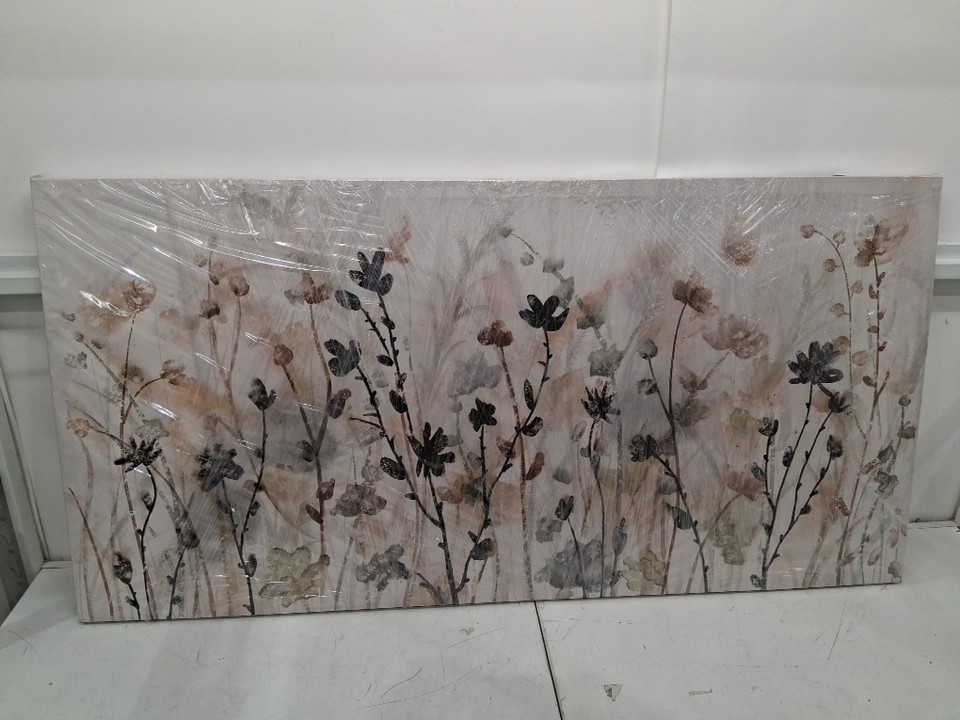Veaee Large Rectangular Canvas Wall Art Decoration - 29" x 58" - Grey/Creme Floral