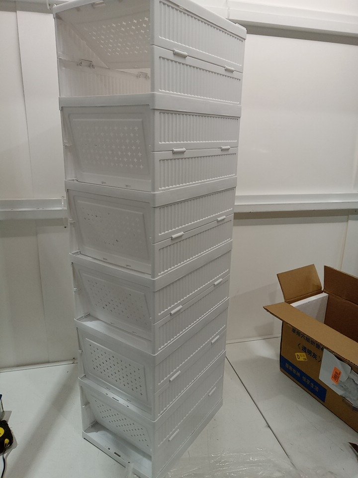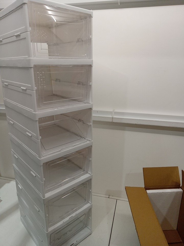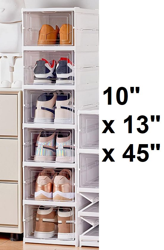 Foldable Drop Front Shoe Storage tower - 10" x 13" x 45" - white/clear