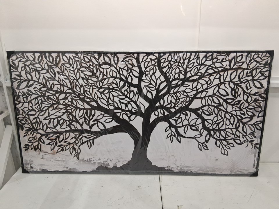MooMel Abstract Wall Art Canvas Painting - "Tree of Life" - 30" x 60" - Black/White