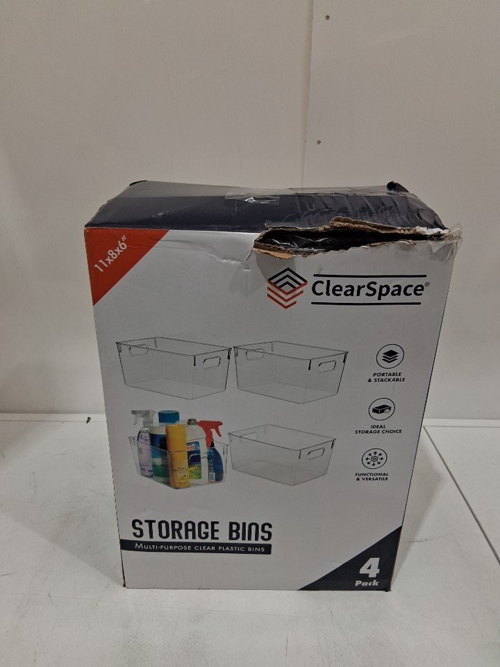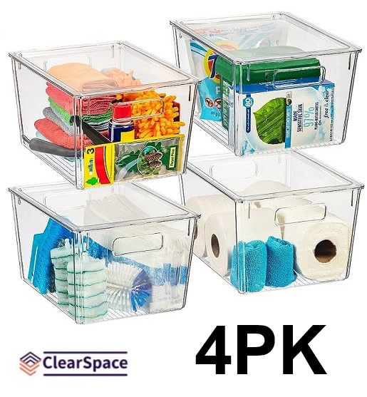 4PK CLEARSPACE MULTI-PURPOSE PLASTIC STORAGE BINS - 11" x 8" x 6" - Clear