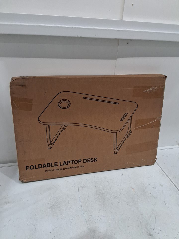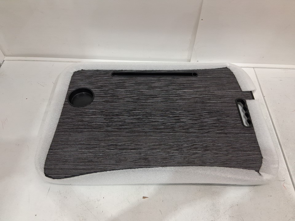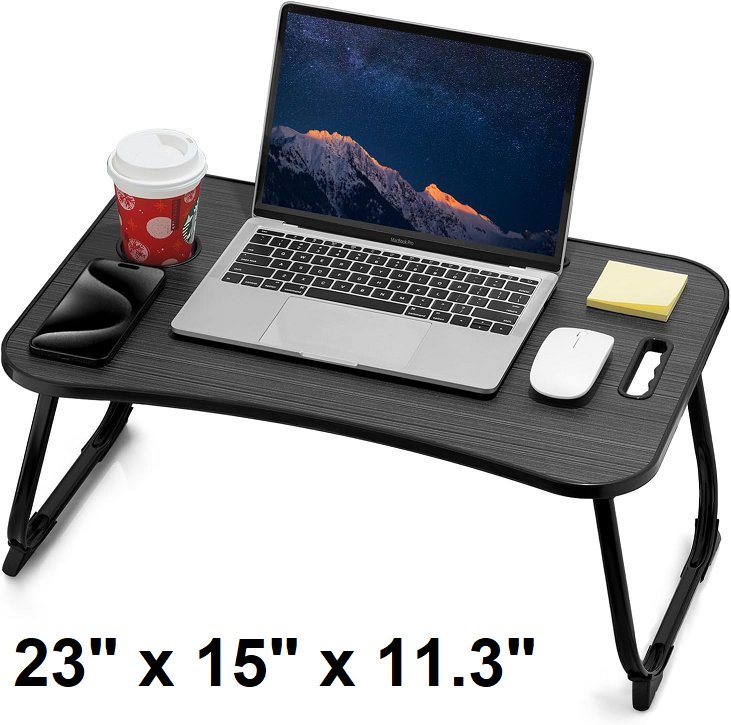 ZEAPTAC Foldable Laptop Bed Desk WITH CUP HOLDER and tablet slot - 23'' x 15'' x 11.3" - grey/black stripe (model: ZLD-Black)