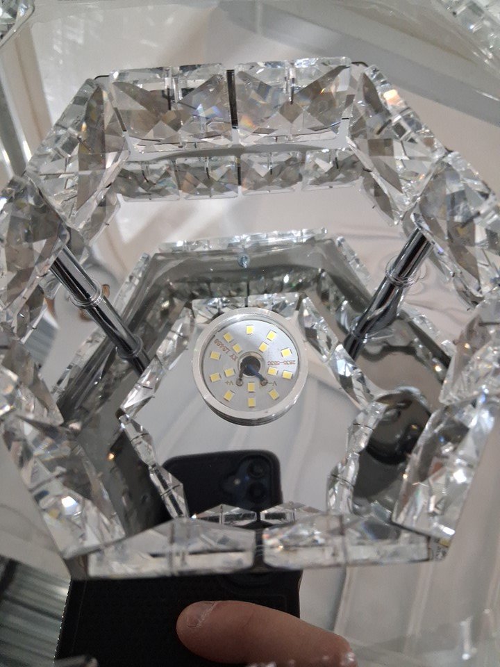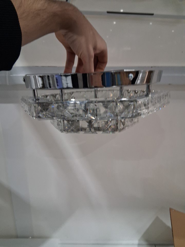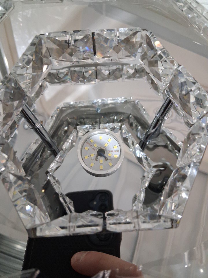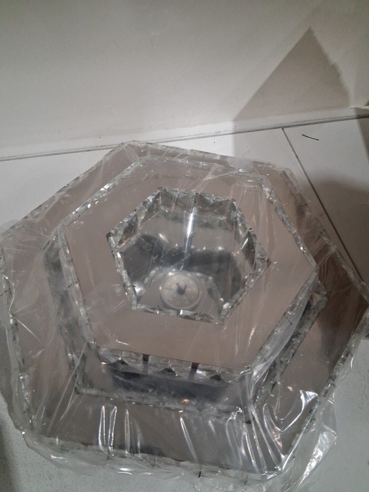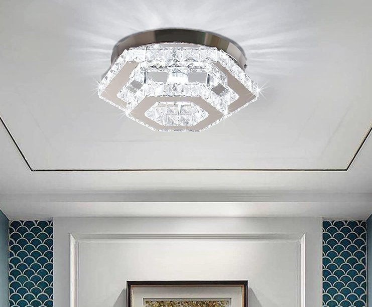 K9CRSYSTALIGHT 2-layer White Crystal Hexagon modern ceiling led light - approx. 12" - silver/clear - (Model: 9K928)