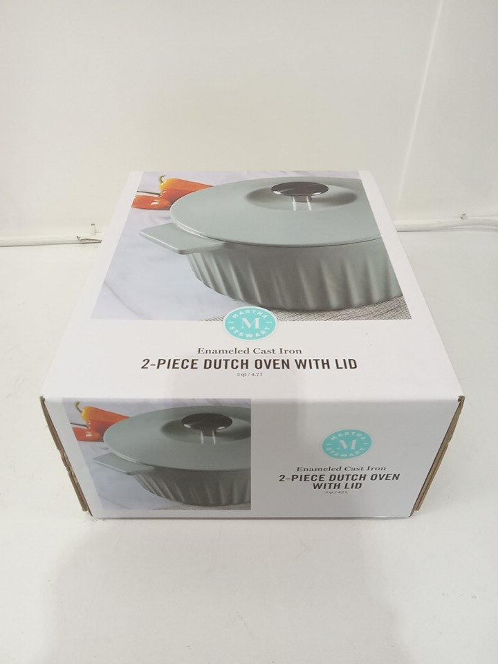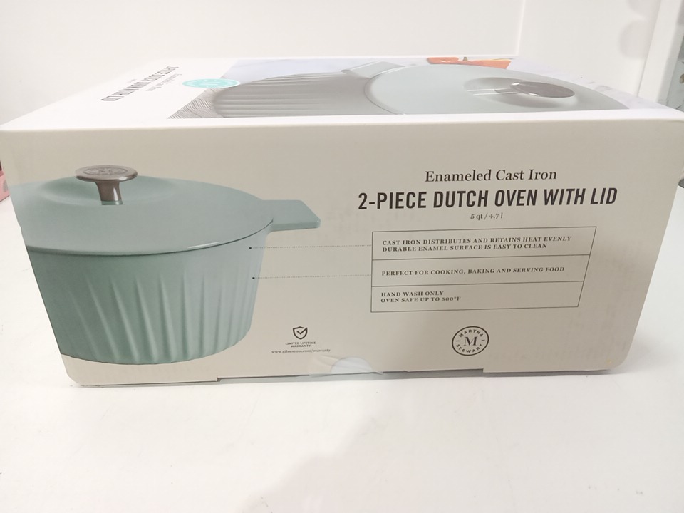 2PC Martha Stewart dutch oven with lid - enameled cast iron - 5 qt - ice mint (model: 129053.02)