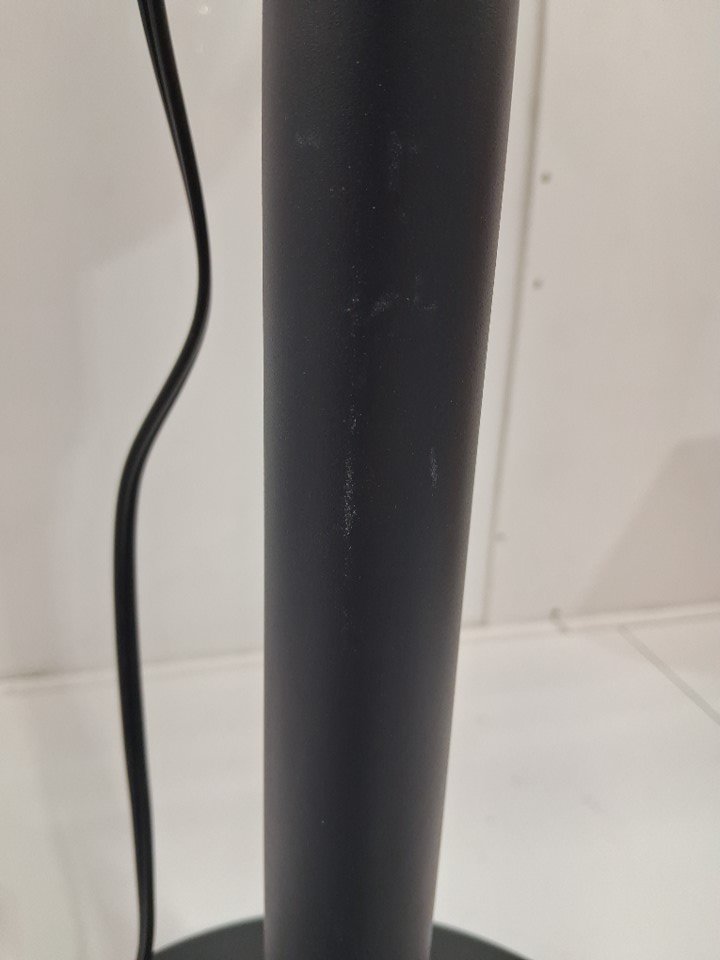 The remote control is not included in the packaging, and there are also some light scuffs on the pole due to shipping - see photos. Otherwise appears to be in new condition and function without any issues.
