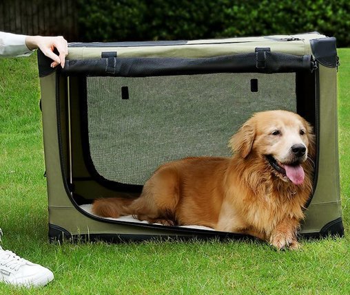 Folding Pet Crate with soft mat - for medium dogs - 24" x 17" x 17" - Green/black - (model: pt016c-m)