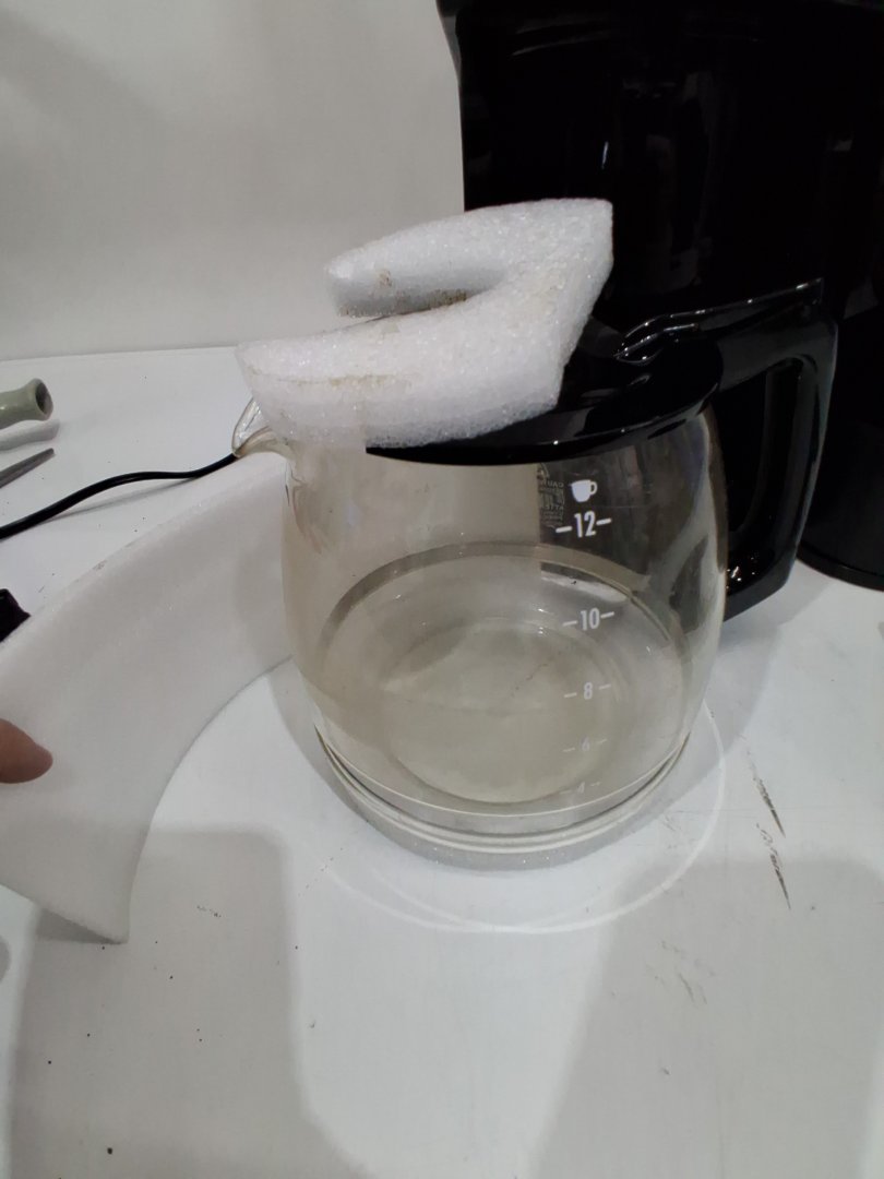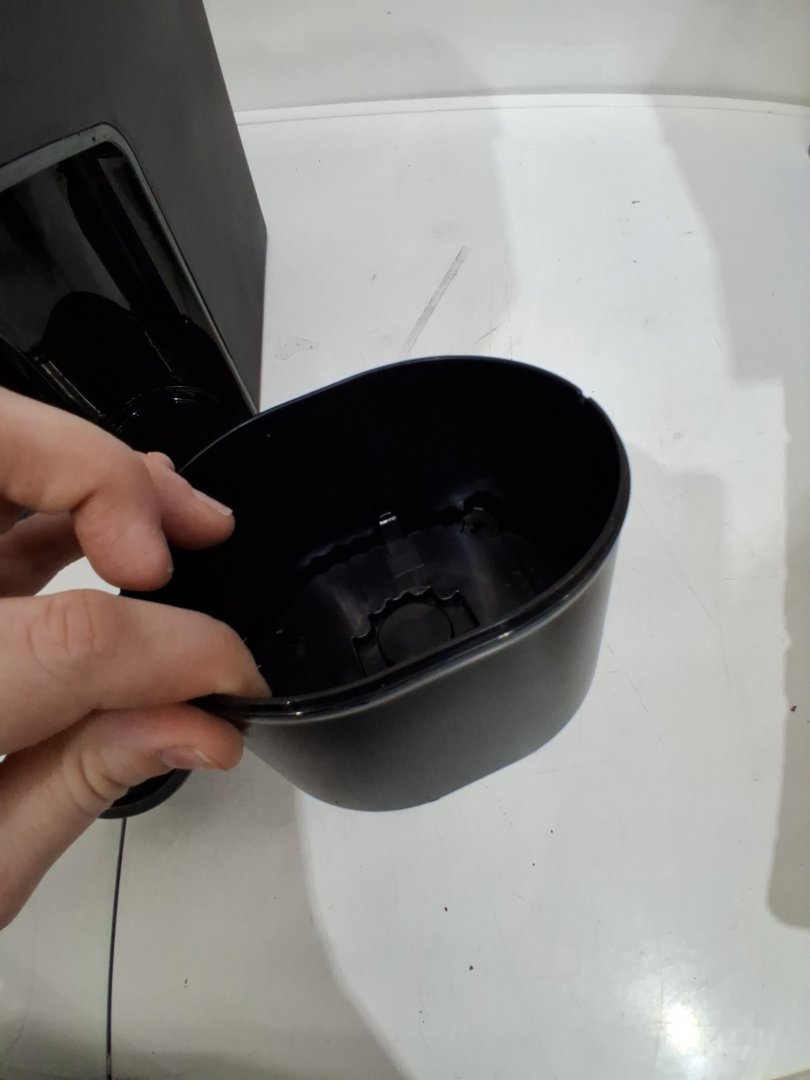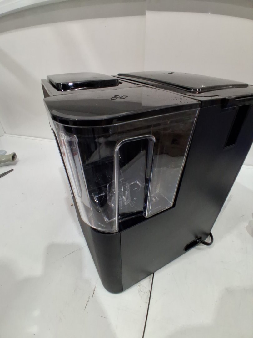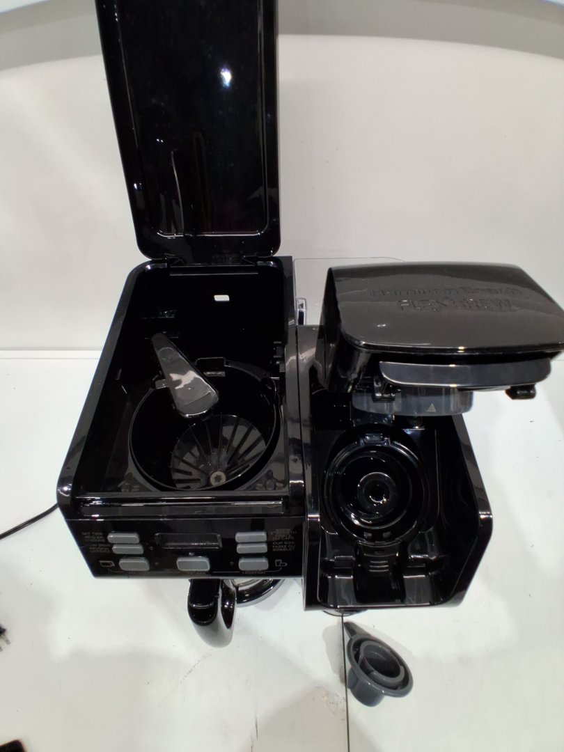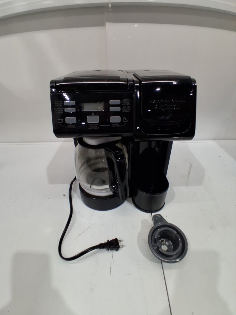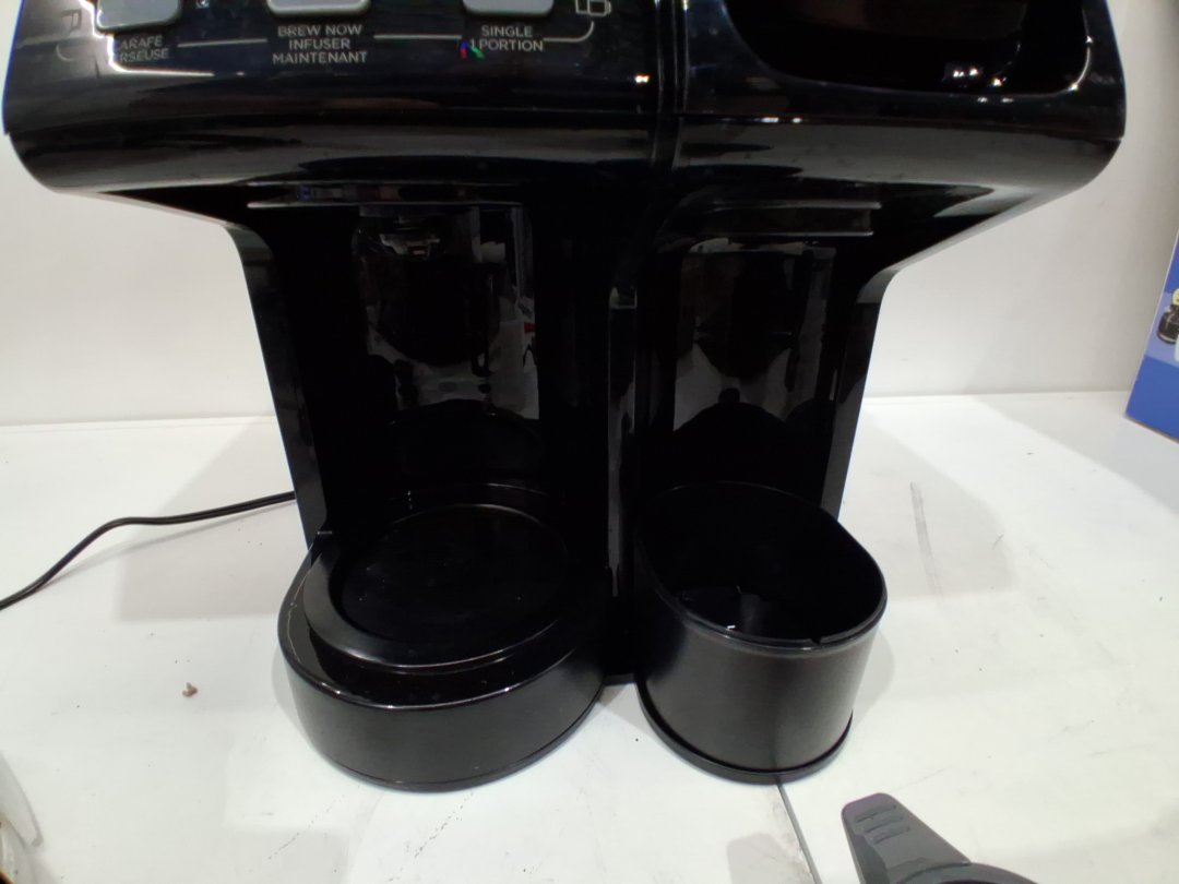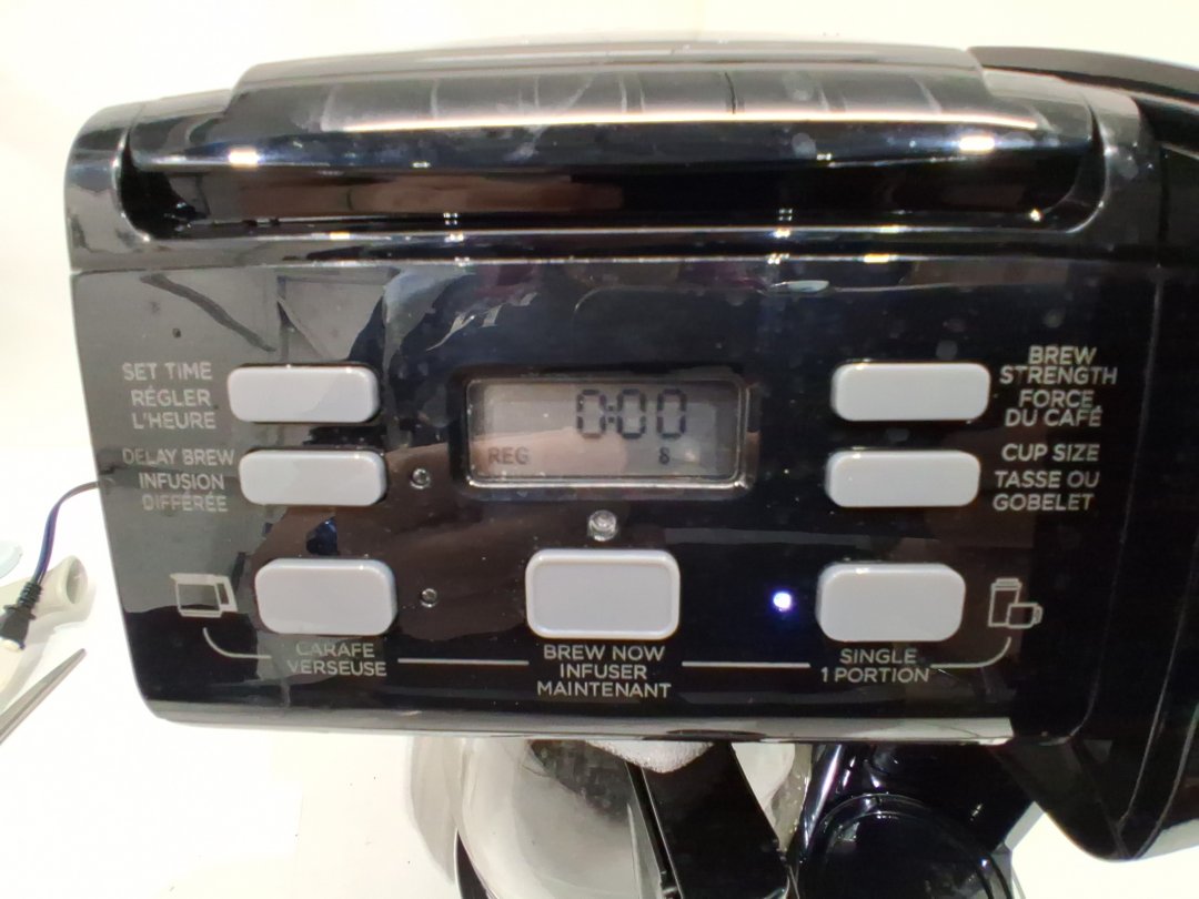 Item shows previous signs of use such as water markings and coffee residue on outside/inside of unit. Item tested for power.