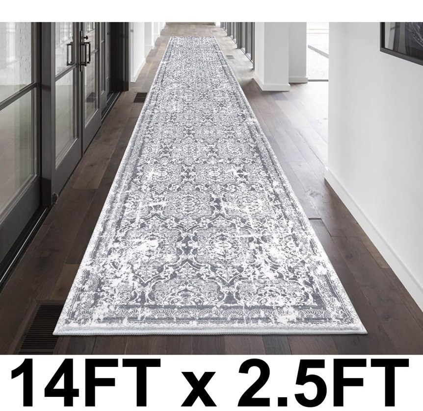 Soft Shaggy Machine Washable Hallway Runner Rug - 14ft x 2.5FT - Grey