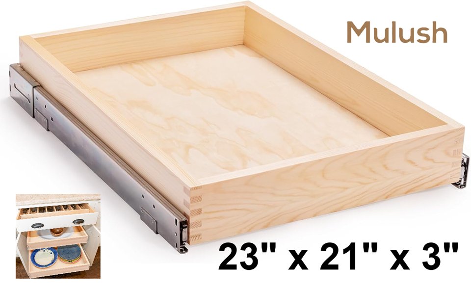 MULUSH Pull-Out Wood Drawer kitchen cabinet bottom assembly - 23" x 21" - NATURAL